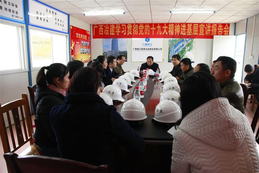 1月17日,公司黨委書記、副總經(jīng)理張濟璜,組織人事處處長梁金峰到由工業(yè)設備安裝工程公司承建的廣西玲瓏輪胎200萬套全鋼主車間工程項目部開展學習貫徹黨的十九大精神進基層宣講報告會。