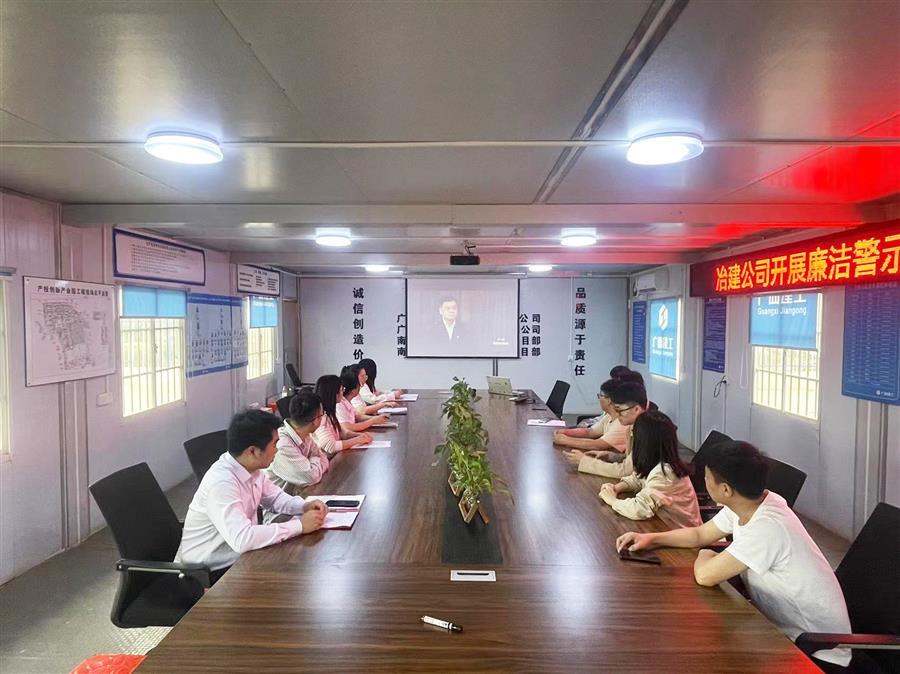 活動(dòng)中,宣講團(tuán)成員展示了愛(ài)國(guó)朗誦——《有為·無(wú)畏》;組織項(xiàng)目部員工觀看了廉潔警示教育片《高壓懲治腐敗》。