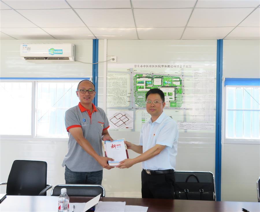 5月24日上午,公司崇左片區(qū)項目聯(lián)合黨支部揭牌儀式在崇左市中醫(yī)壯醫(yī)醫(yī)院整體搬遷項目主體工程項目部舉行,公司黨委副書記、紀委書記、工會主席賴海標和項目聯(lián)合黨支部書記鄧牧共同為黨支部成立揭牌。揭牌儀式由公司組織人事處處長梁金峰主持。公司相關(guān)職能部門、分公司代表和崇左片區(qū)各項目部成員參加揭牌儀式。
