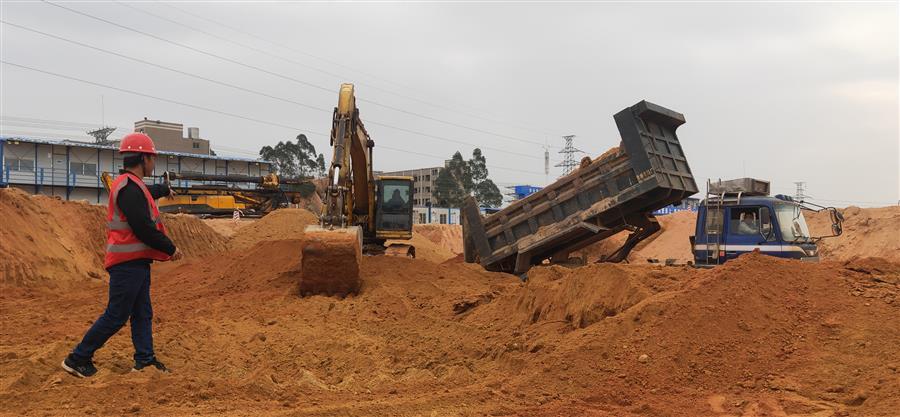 項目部現(xiàn)在已吹響“決戰(zhàn)三十天,沖刺總目標”的號角,各項搶工工作正全面鋪開。目前,安全文明臨時設(shè)施已基本施工完畢,現(xiàn)場正緊鑼密鼓地進行主體處障礙山體移除及基坑開挖等工作。