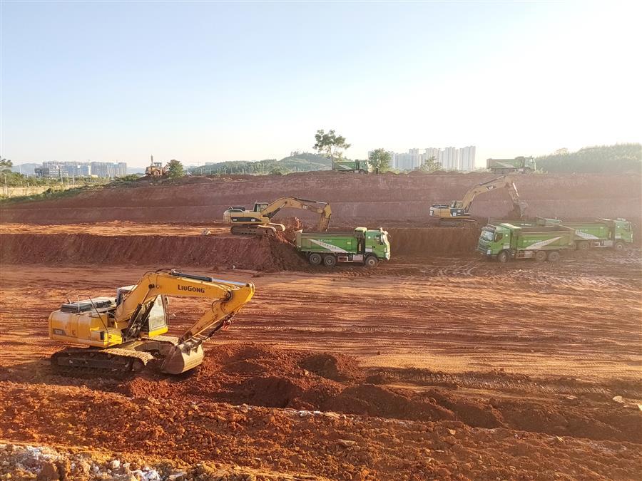 在第七分公司承建的柳江區(qū)新興工業(yè)園柳石路東片區(qū)基礎(chǔ)設(shè)施建設(shè)項目-土方平整工程(三期)施工現(xiàn)場,項目管理人員和工人用辛勤的汗水為城市建設(shè)默默奉獻。