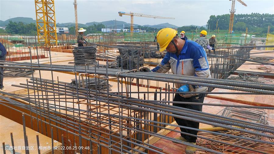 為了確保按時間節(jié)點完成工作量,項目部想方設(shè)法克服各種困難,在做好疫情防控及防暑降溫保障措施工作的同時,認(rèn)真抓好施工現(xiàn)場的安全和質(zhì)量管理工作。當(dāng)前,項目每天有200多人的鋼筋班組、木工班組、外架班組、滿堂架班組和混凝土班組在現(xiàn)場有序進行安裝模板、搭設(shè)支架、綁扎鋼筋等工作。