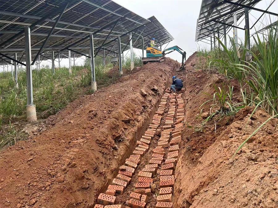 節(jié)后復(fù)工復(fù)產(chǎn)以來(lái),項(xiàng)目接地網(wǎng)開挖敷設(shè)完成1235米,低壓電纜敷設(shè)完成1285米,光伏專用電纜敷設(shè)完成14760米,圍欄安裝1030米。