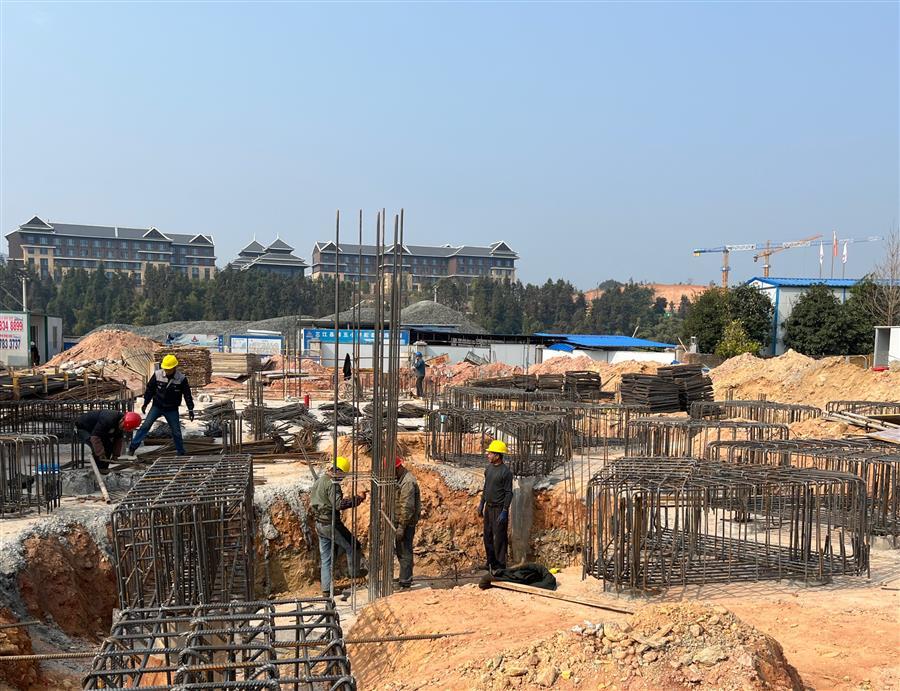 融水苗族自治縣安陲鄉(xiāng)江門村鄉(xiāng)村振興產(chǎn)業(yè)園項目總建筑面積約8420平方米。項目建設(shè)內(nèi)容包括:園區(qū)標準廠房建設(shè)及道路工程、場地平整、雨水、污水、給水、室外電氣及室外綠化工程;廠房結(jié)構(gòu)形式為框架結(jié)構(gòu)。目前,項目1#廠房二層磚墻砌磚40%;4#、5#廠房外墻磚砌筑90%;7#廠房主體結(jié)構(gòu)屋面鋼筋綁扎完成。