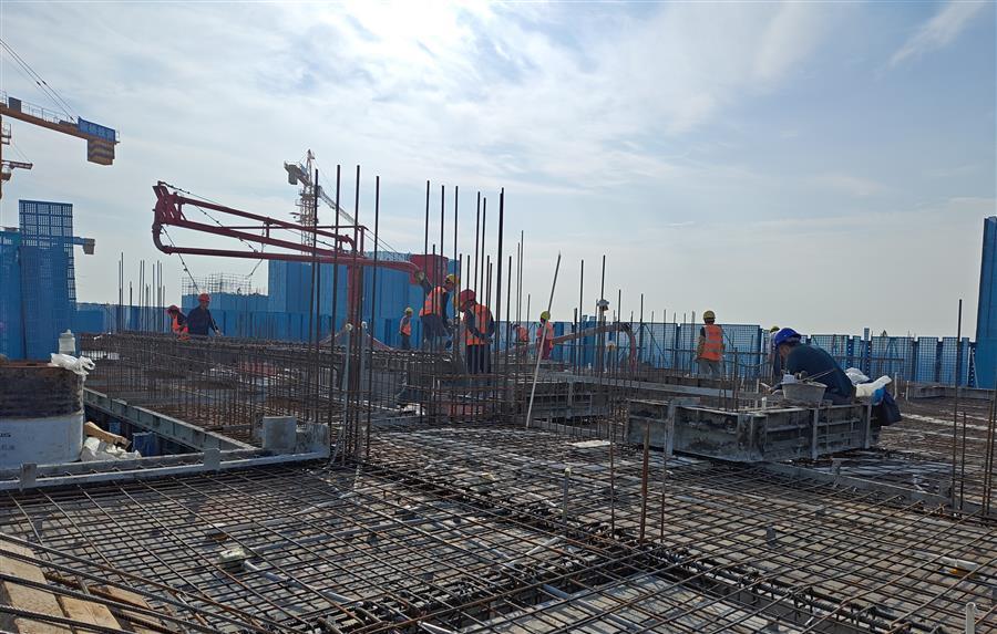 為確保工程快速推進(jìn),項(xiàng)目部實(shí)行兩班制,科學(xué)制定了夜間專項(xiàng)施工方案,倒排工期,規(guī)劃任務(wù)單,明確了各施工點(diǎn)的建設(shè)內(nèi)容、時(shí)間節(jié)點(diǎn)以及相關(guān)責(zé)任人,有序推進(jìn)夜間施工作業(yè)。目前,中試車間一層二次結(jié)構(gòu)砌筑完成;1#、2#生產(chǎn)車間正在搭設(shè)49-57軸模架及進(jìn)行40-45軸剛性地面施工;宿舍樓在進(jìn)行4層梁板砼澆筑和頂板模板、鋼筋施工;倉(cāng)庫(kù)在進(jìn)行2層梁板砼澆筑和2層模架搭設(shè)。累計(jì)完成產(chǎn)值約1.15億元,完成合同造價(jià)的23.5%。