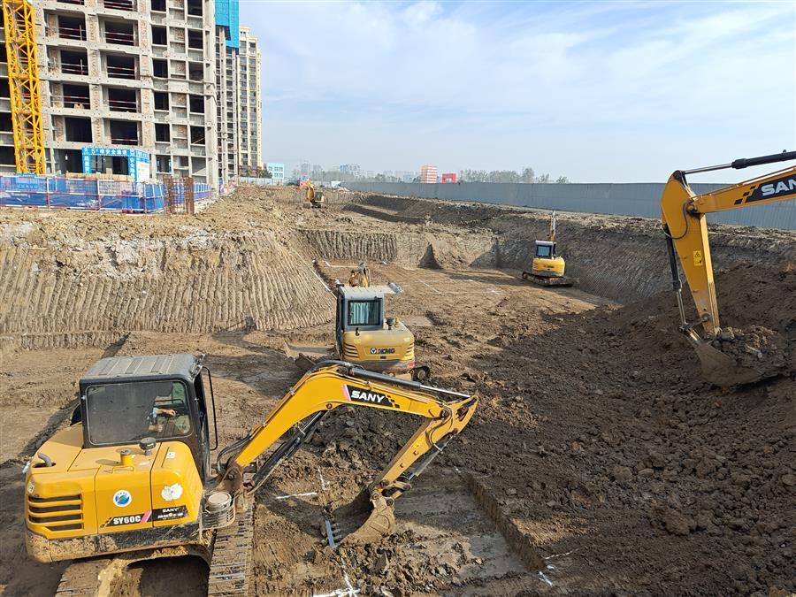 “工程實(shí)際形象進(jìn)度比預(yù)期進(jìn)度目標(biāo)提早了50天!”陽光南岸小區(qū)二期建設(shè)項(xiàng)目施工員韋佳樂說道。走進(jìn)項(xiàng)目現(xiàn)場(chǎng),9臺(tái)塔吊、15座爬架、15臺(tái)施工電梯正井然有序地運(yùn)轉(zhuǎn),結(jié)構(gòu)施工、磚墻砌筑、內(nèi)架防護(hù)和女兒墻外架搭設(shè)等同時(shí)施工,齊頭并進(jìn),人機(jī)協(xié)同、施工繁忙。