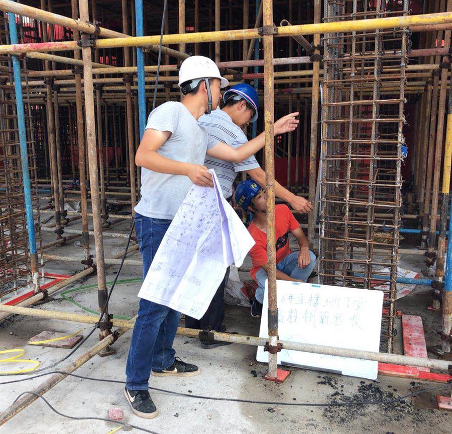 6月18日,在桂華分公司承建的梧州佛子時(shí)代廣場(chǎng)項(xiàng)目現(xiàn)場(chǎng),當(dāng)空烈日讓偌大的工地一片熾熱,焊花飛濺,工程車來來往往,工人們揮汗如雨。雖然施工作業(yè)已經(jīng)避開了高溫時(shí)段,但工人們?nèi)员缓顾粤搜劬?,濕了衣服。盡管這樣,大家仍堅(jiān)持“全副武裝”,手套、防護(hù)用具,安全帽,一樣都沒有少,自覺遵守安全文明施工相關(guān)規(guī)范。入行兩年的施工員趙俊財(cái)抹了一把汗說道:“剛參加工作時(shí),不能和家人一起過節(jié)還挺難受的,后來把心態(tài)調(diào)整好了,想著只要家人安好,其實(shí)比什么都重要,趁著年輕,還是應(yīng)該多奮斗?!笨粗幻装舜髠€(gè)的他手拿圖紙和卷尺,蜷縮著身子,蹲在空間有限且熱得發(fā)燙的平臺(tái)上仔細(xì)檢查剛剛綁扎好的鋼筋籠,驕陽烤得他黝黑的皮膚泛出一層水光,襯著那還略顯年輕的臉龐,顯得熠熠生輝。