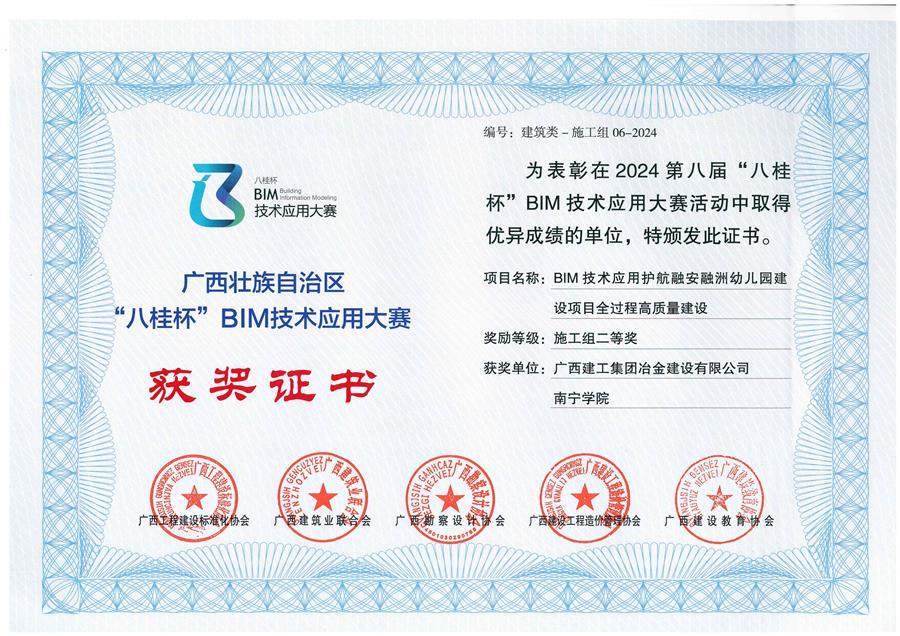 12月30日,冶建公司基礎(chǔ)分公司收到廣西第八屆“八桂杯”BIM技術(shù)應(yīng)用大賽榮獲施工組建筑類二等獎的獲獎證書。這是基礎(chǔ)分公司創(chuàng)優(yōu)工作的又一碩果。據(jù)統(tǒng)計(jì),2024年該分公司在BIM技術(shù)方面榮獲國家級獎3項(xiàng),區(qū)級八桂杯二等獎1項(xiàng);QC成果榮獲國家級QC成果4項(xiàng),部級QC成果3項(xiàng),區(qū)級QC成果15項(xiàng)。