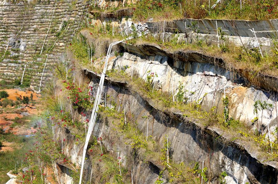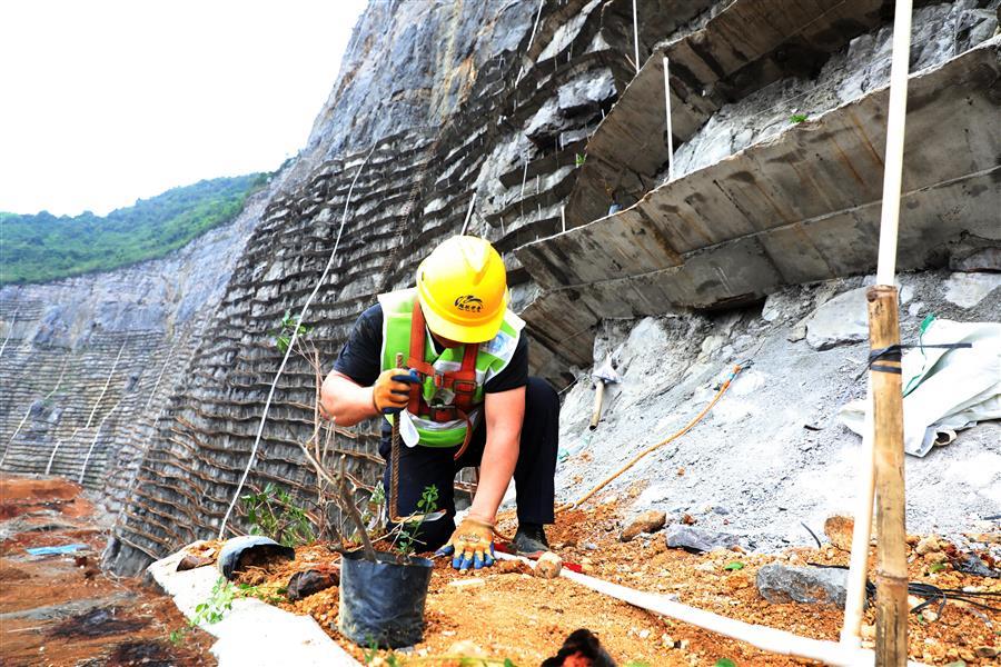 一直以來,公司積極踐行習(xí)總書記提出的“綠水青山就是金山銀山”的理念,致力于綠色發(fā)展,努力為柳州生態(tài)文明建設(shè)貢獻(xiàn)力量。2018年9月26日,樓梯山采石場(chǎng)山體復(fù)綠工程開工,采石場(chǎng)山體治理面積22.5萬平方米,施工采取在陡壁上布置擋土板,形成V形槽,回填泥土后種植紫薇、夾竹桃、爬墻虎、三角梅等進(jìn)行綠化。
