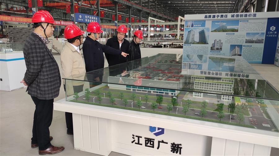 在江西廣新建筑產(chǎn)業(yè)有限公司,蒙勝益與江西廣新公司董事長、總經(jīng)理黃平等參觀裝配式建筑產(chǎn)業(yè)基地,了解江西廣新公司裝配式產(chǎn)品生產(chǎn)、工藝流程等情況。在交流座談中,雙方達(dá)成共識,希望能共同加強(qiáng)溝通交流,創(chuàng)新合作模式,實現(xiàn)雙贏。