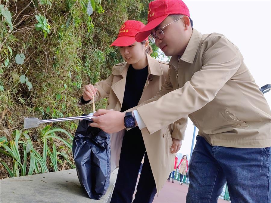 活動中,志愿者們手持垃圾鉗、垃圾袋,沿著環(huán)江濱水步道開展“垃圾清零”活動,仔細地撿拾沿岸的垃圾,維護江堤的環(huán)境衛(wèi)生。