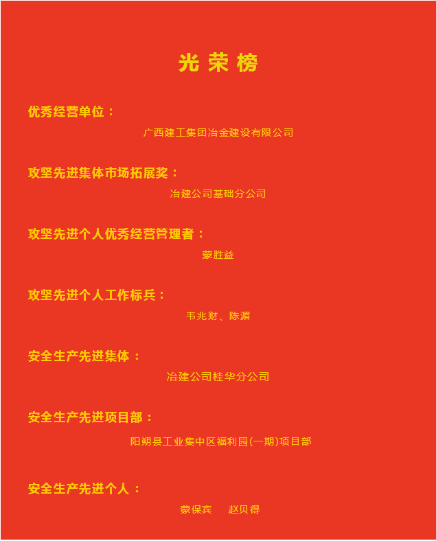 【喜訊】冶建公司榮獲集團(tuán)公司多項(xiàng)榮譽(yù)