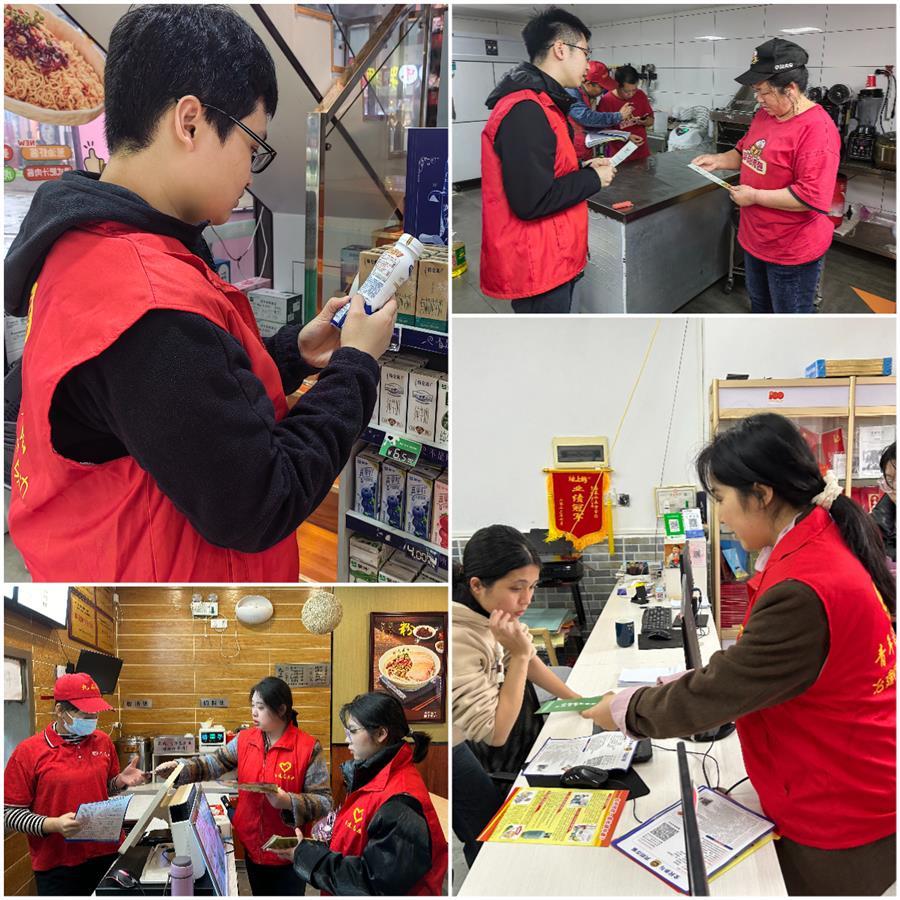 活動過程中,志愿服務隊分成三組,深入臨街商鋪現(xiàn)場為居民講解消防安全、食品安全、應急避險相關知識,并發(fā)放宣傳材料。