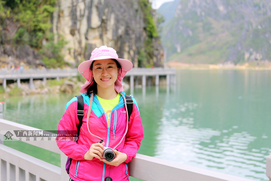 2017年4月22日,黃文秀與記者一起在凌云縣采訪時(shí)留下的照片。 記者 陳 強(qiáng) 攝
