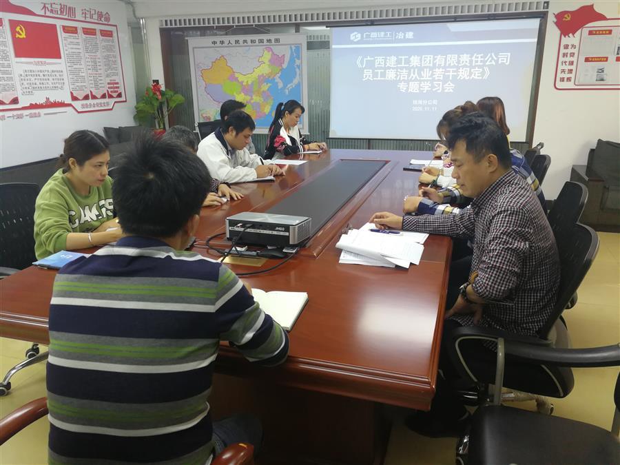 近日,桂海分公司召開員工會議,組織學(xué)習(xí)《廣西建工集團(tuán)有限責(zé)任公司員工廉潔從業(yè)若干規(guī)定》(以下簡稱《規(guī)定》)。