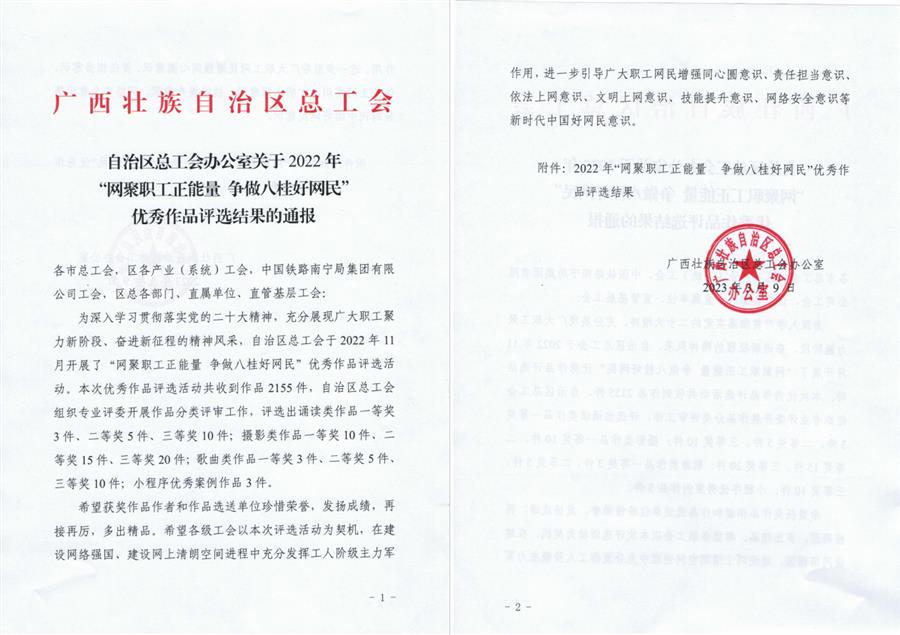 近日,自治區(qū)總工會公布了2022年“網(wǎng)聚職工正能 爭做八桂好網(wǎng)民”優(yōu)秀作品評選結(jié)果,公司職工攝影作品《焊花飛濺鑄匠心》榮獲一等獎(jiǎng),《組圖:爬“天梯”去植綠》榮獲三等獎(jiǎng)。